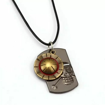 Collier One Piece du chapeau de paille de Luffy et d’une plaque avec le logo du manga